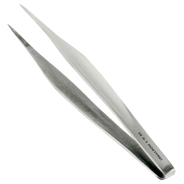 Pincet Feilchenfeld met een brede grip voor goed houvast.9 cm lang van RVS.